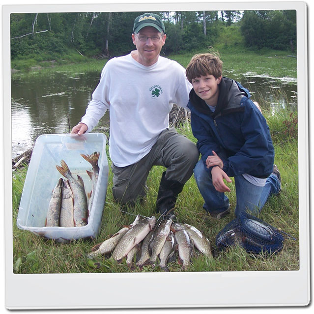 Drive to location on the Wabigon River. We have had great success at this location, and it is a great place to go on days that are too windy to enjoy on the main lake. The shoreline has easy access to both a shallow lake and the river. These two bodies of water are divided by a small access road with a culvert and current running between the two. You can expect to catch numbers of Pike, and if you have children it is a wonderful place for action. Nothing is more important to a youngster than having a fish on the end of his or her line!